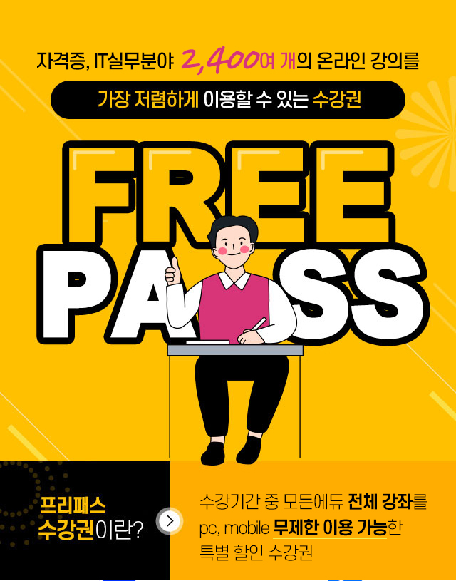 - 1년 프리패스 수강권은 결제 진행 후 1년간 이용 가능합니다.