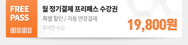 - 월 정기결제 수강권은 매월 결제하는 조건으로 특별할인가에 이용 가능합니다.