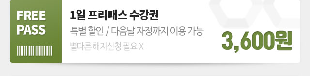 - 1일 프리패스 수강권은 결제 진행 후 다음날 자정까지 이용 가능합니다.
